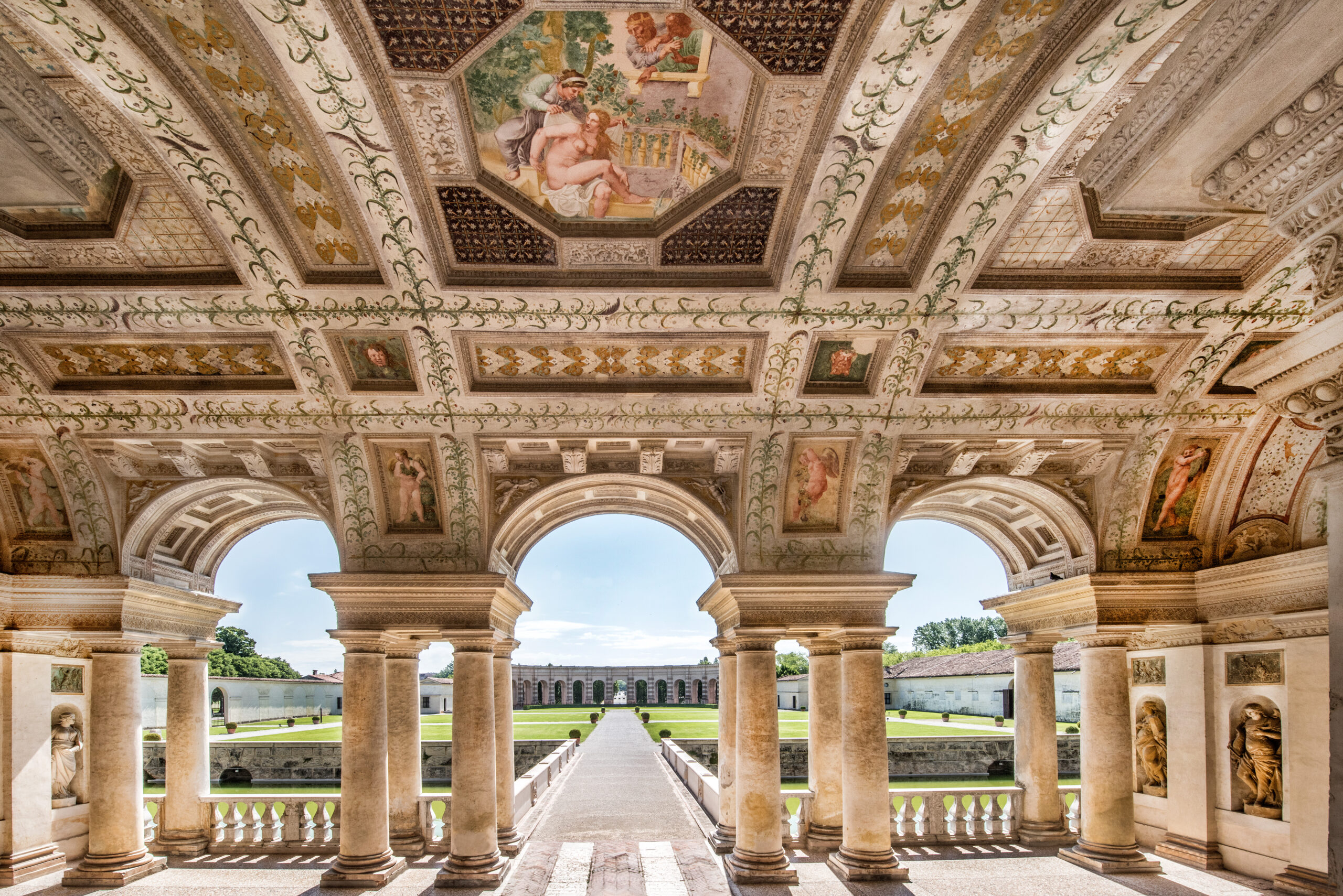 The grandiose Gonzaga residence of the Palazzo Ducale, which overlooks Sordello Square, connects, following the so-called Prince's Path, with the most intimate buildings and spaces of the Gonzaga family, at the opposite end of the city: Te Palace, sixteenth-century suburban villa designed by Julius Romano, San Sebastiano Palace, The Temple of San Sebastiano designed by Leon Battista Alberti, the Andrea Mantegna's House.