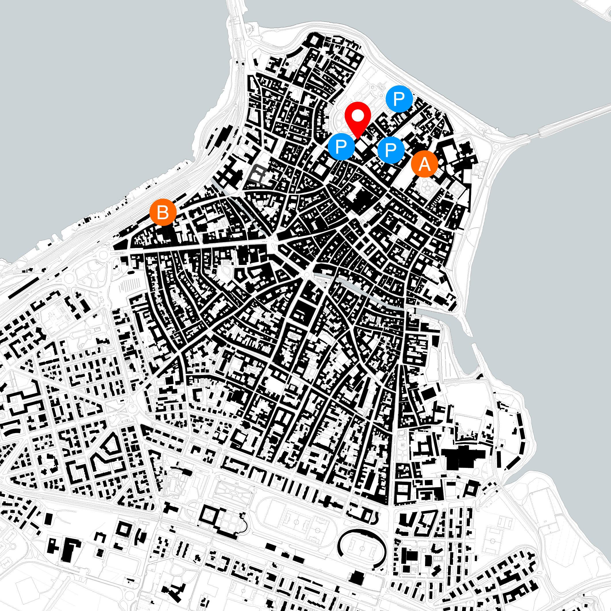 There are several parking areas near the museum, including reserved parking spaces (shown on the map).
