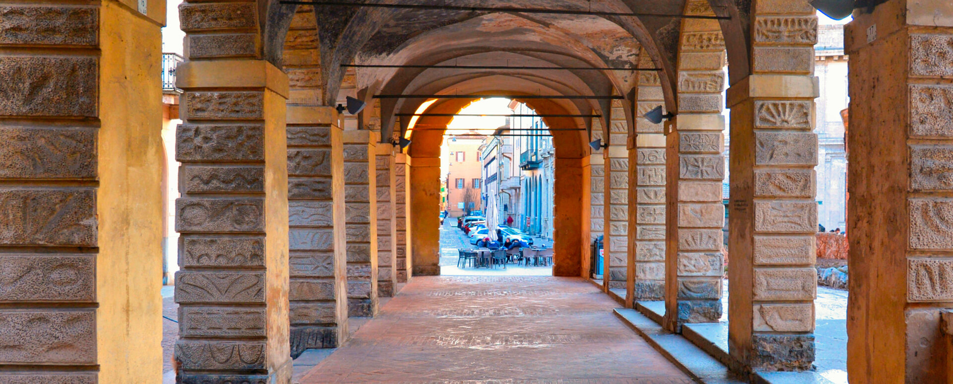 On the right side of the road you can see the original decorative cladding of the “rustic” structure which Julius Romano also uses for Te Palace. The porticoes in front of you, however, are the result of restoration and partial reconstruction. The Church and Convent of San Domenico once stood in place of the last three arches, of which only the bell tower remains today. The very imposing church was closed during the Napoleonic era and transformed into a meat warehouse. The fishmongers remained active until the 1940s, while the butchers were demolished in 1877 and the convent in 1927.