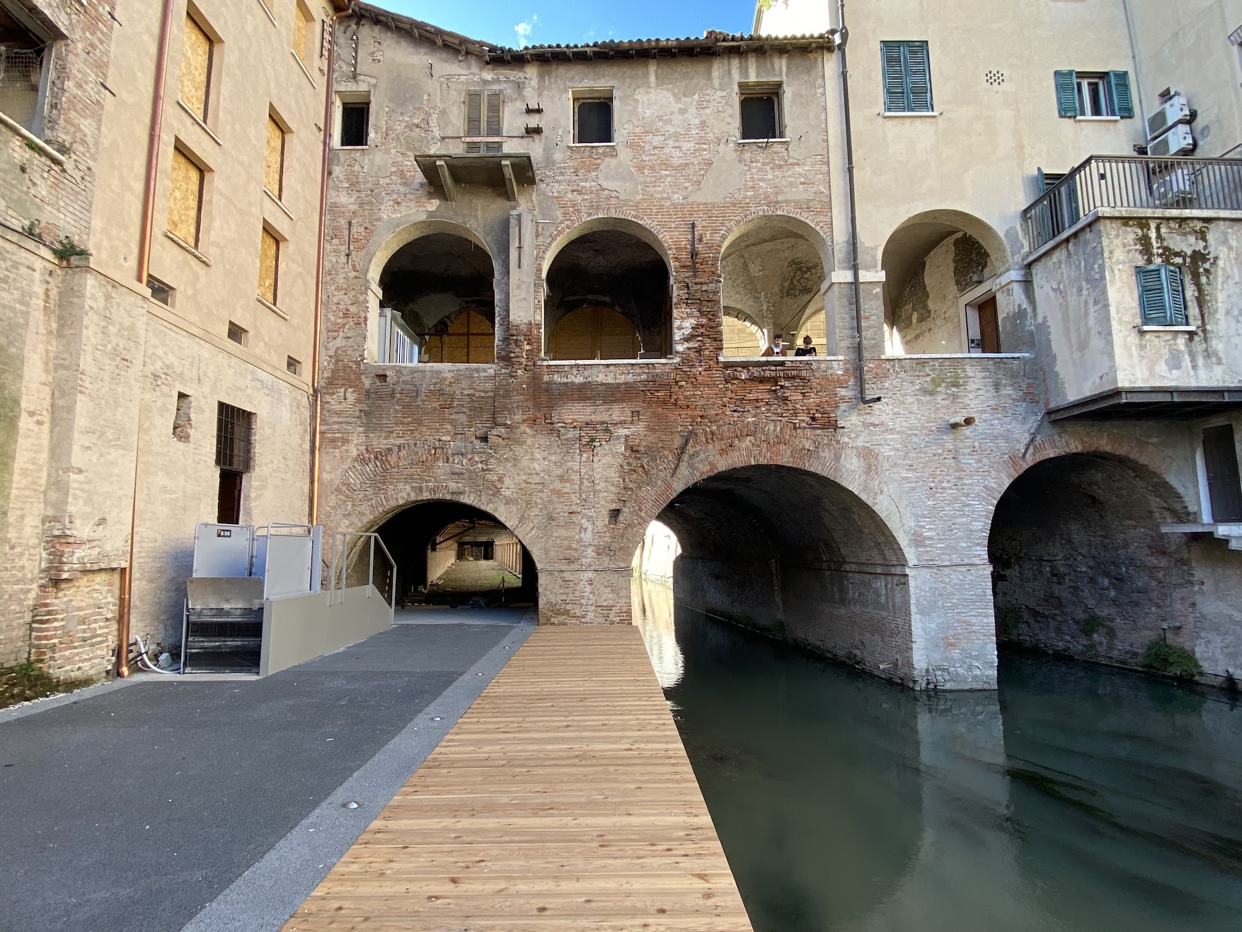 The Fish Markets by Giulio Romano are the only public building created by the artist in 1536, commissioned by Federico II Gonzaga. The market was held under the arcades that form a bridge over the Rio. Next to them were food warehouses: to your right the fish one and to your left the meat one, with the lost Butcher's, the public slaughterhouse.