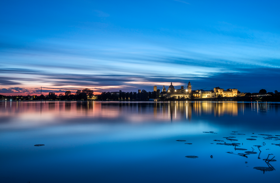 Crossing the San Giorgio Bridge, especially from the Campo Canoa area, you can fully enjoy the view of the city. Mantua's skyline is so striking not only because it is reflected in the lake, but also because it shows how the city is the result of the stratification of buildings from different eras.