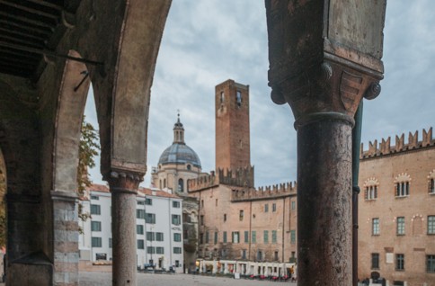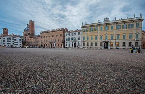 Ti trovi nel nucleo più antico della città, la Civitas Vetus, il luogo da cui tutto è partito. La storia inizia con un piccolo abitato etrusco in mezzo alle paludi, poi è la volta delle strade romane e delle abitazioni patrizie di cui rimane ancora oggi un meraviglioso pavimento a mosaico. Anche durante il Medioevo la zona è piena di case e circondata da una cinta di mura che si apre sull’attuale voltone di San Pietro. La grande trasformazione di Piazza Sordello avviene alla fine del ‘300, quando, grazie agli interventi di bonifica, la città ha a disposizione nuovi spazi per allargarsi. I Gonzaga, nuovi Signori di Mantova, ne approfittano e ordinano l’abbattimento delle case e delle torri presenti per creare un ingresso trionfale alla propria Città-Palazzo.